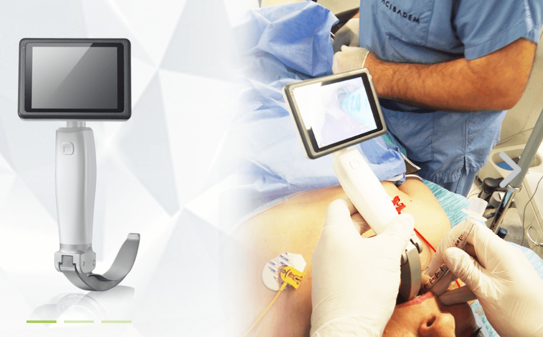 有一次盖板妹去拜访客户,对方展示了产品实物,是一款医疗用的视频喉镜,用于急救病人气管插管处理的显示屏。客户讲述了现在遇到的问题:医生在抢救病人时要快速精准地找到并接上气管,但现在的显示屏太反光,有时看不清楚,影响操作。所以急需解决反光的问题。